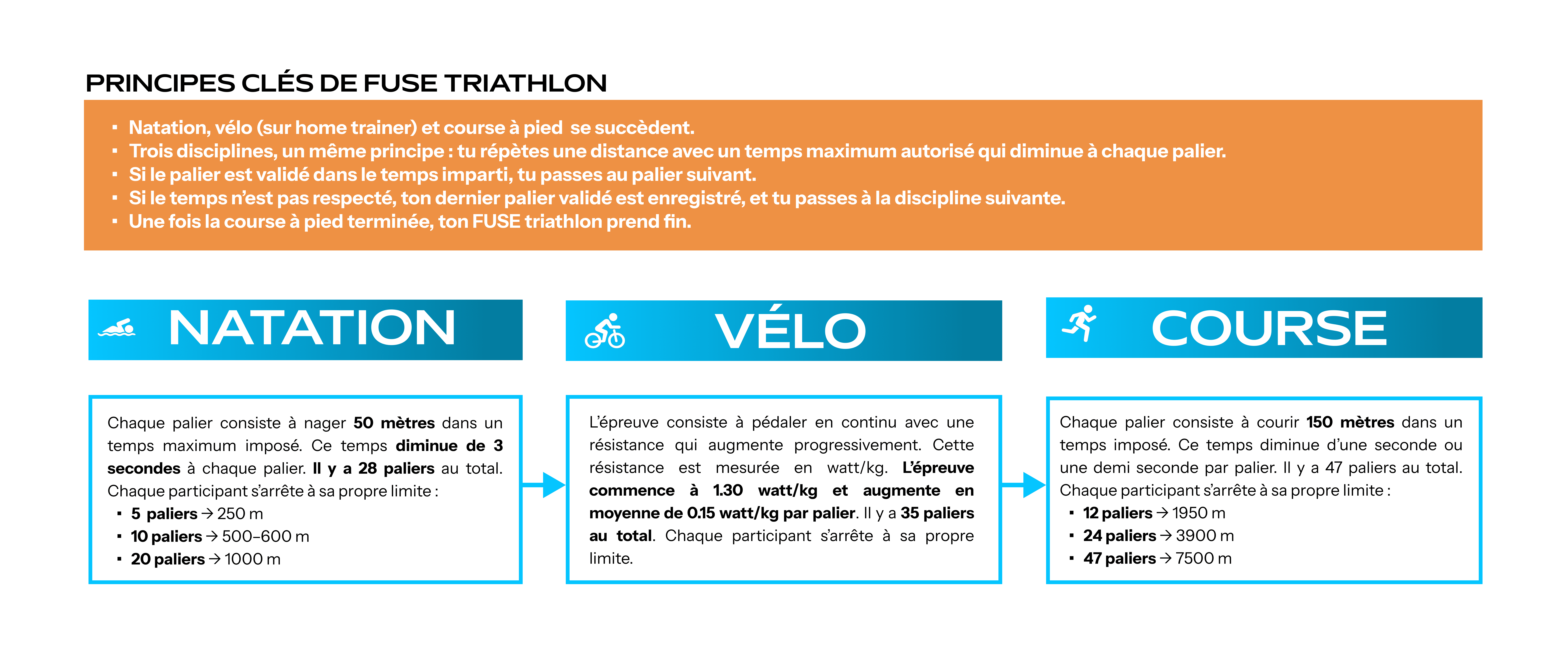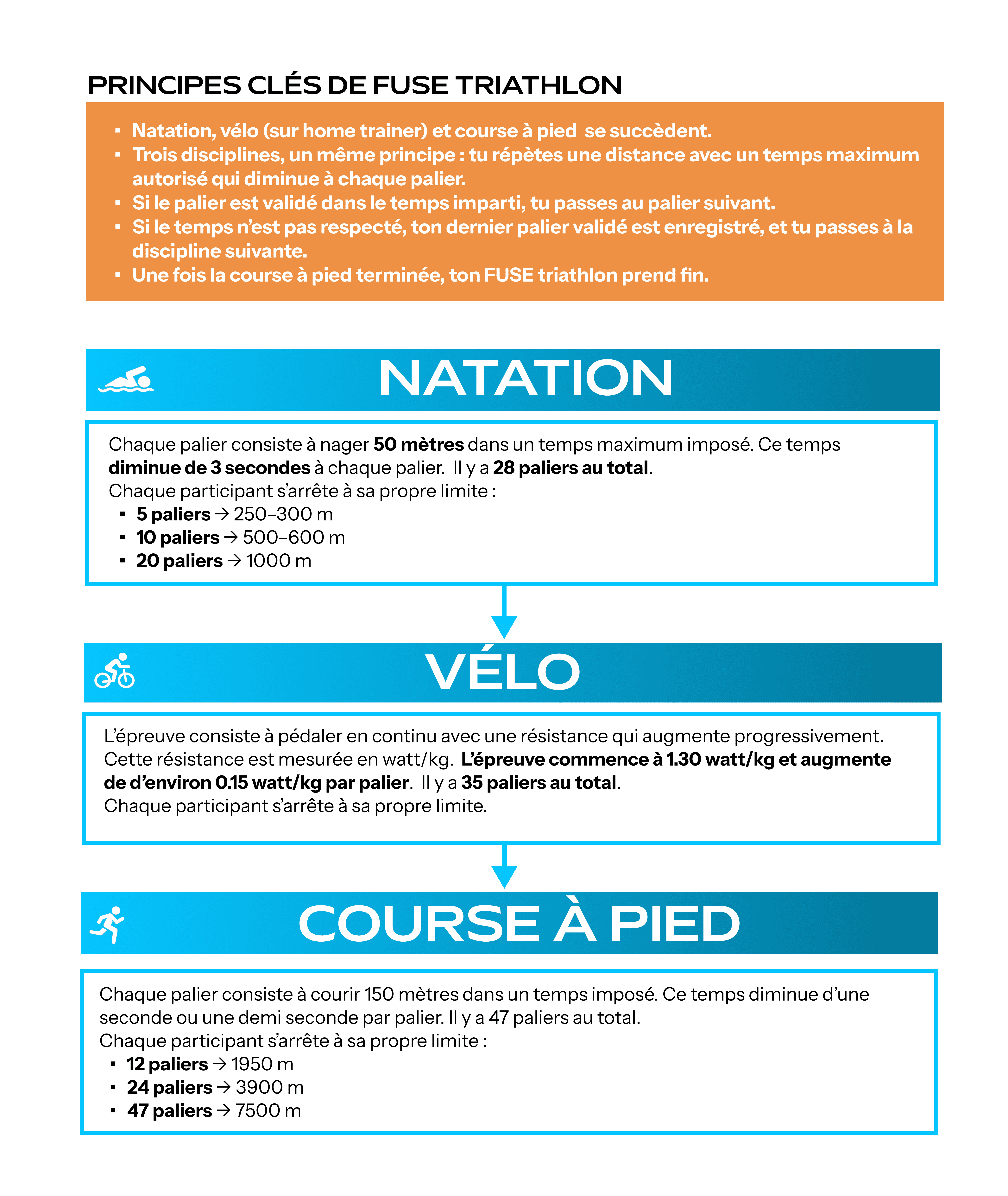 Le principe est simple : enchaîner les trois disciplines du triathlon en suivant la mécanique du Rising Effort, où l'intensité augmente dans chaque discipline, jusqu’au point de rupture physique.